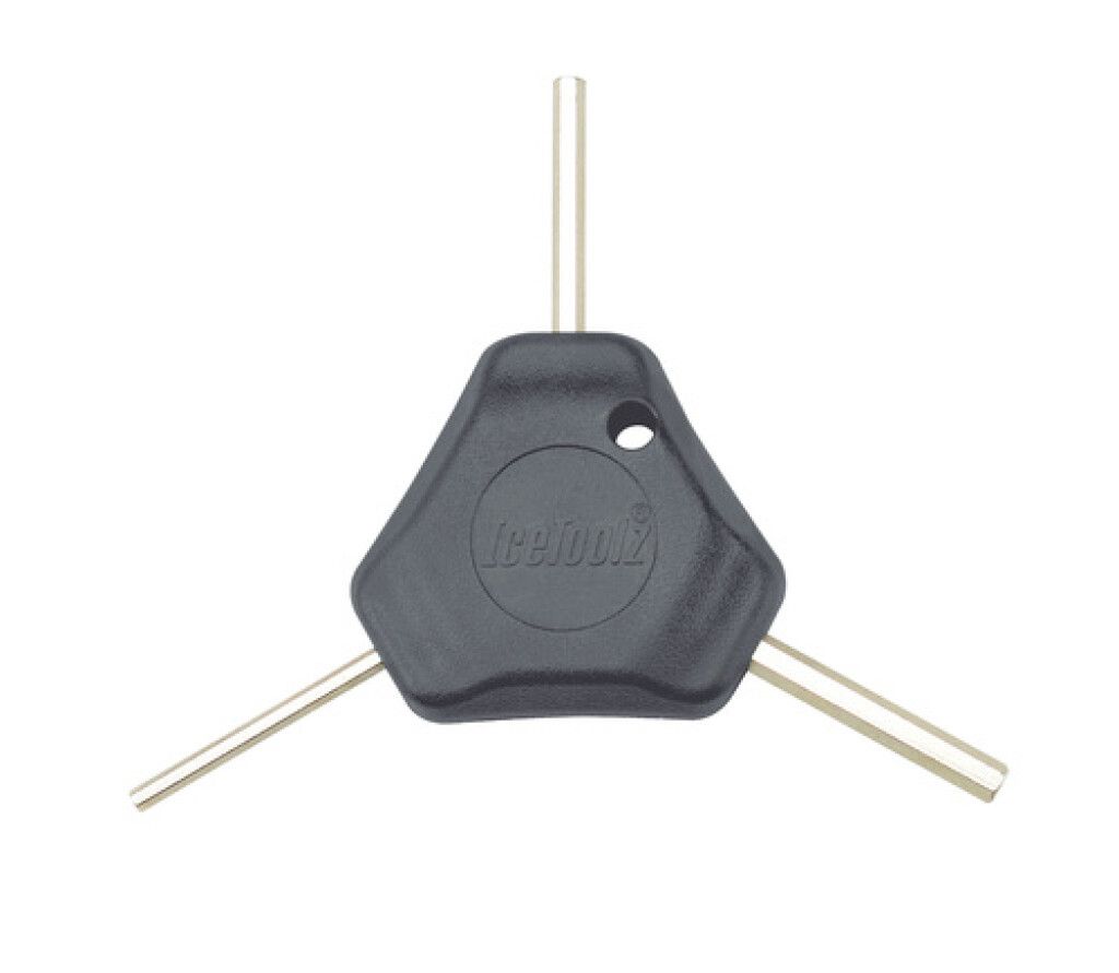 De IceToolz Y-sleutel met 3 maten inbussleutels in de maten 3, 4 en 5 mm. De inbussleutel ligt prettig in de hand en je hebt altijd de juiste inbusmaat bij de hand. Deze Y-sleutel is gemaakt van chroom-vanadiumstaal met een kunststof grip.