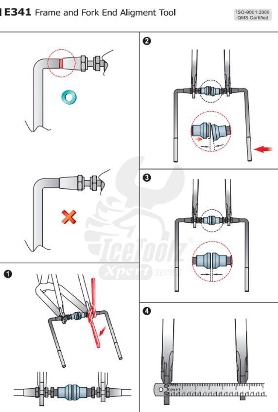 Na een val kan het frame een beetje uit het lood staan. Dit is vaak lastig te zien met het blote oog, maar na montage van deze framerichter is het probleem direct duidelijk. Zie ook het filmpje uit de link hieronder. Snel en vakkundig kan de verbuiging gecorrigeerd worden met deze IceToolz framerichter. De framerichter is alleen voor stalen frames omdat aluminium zich niet laat uitzetten, al bij enige verbuiging ontstaat er dan een zwakte in het frame